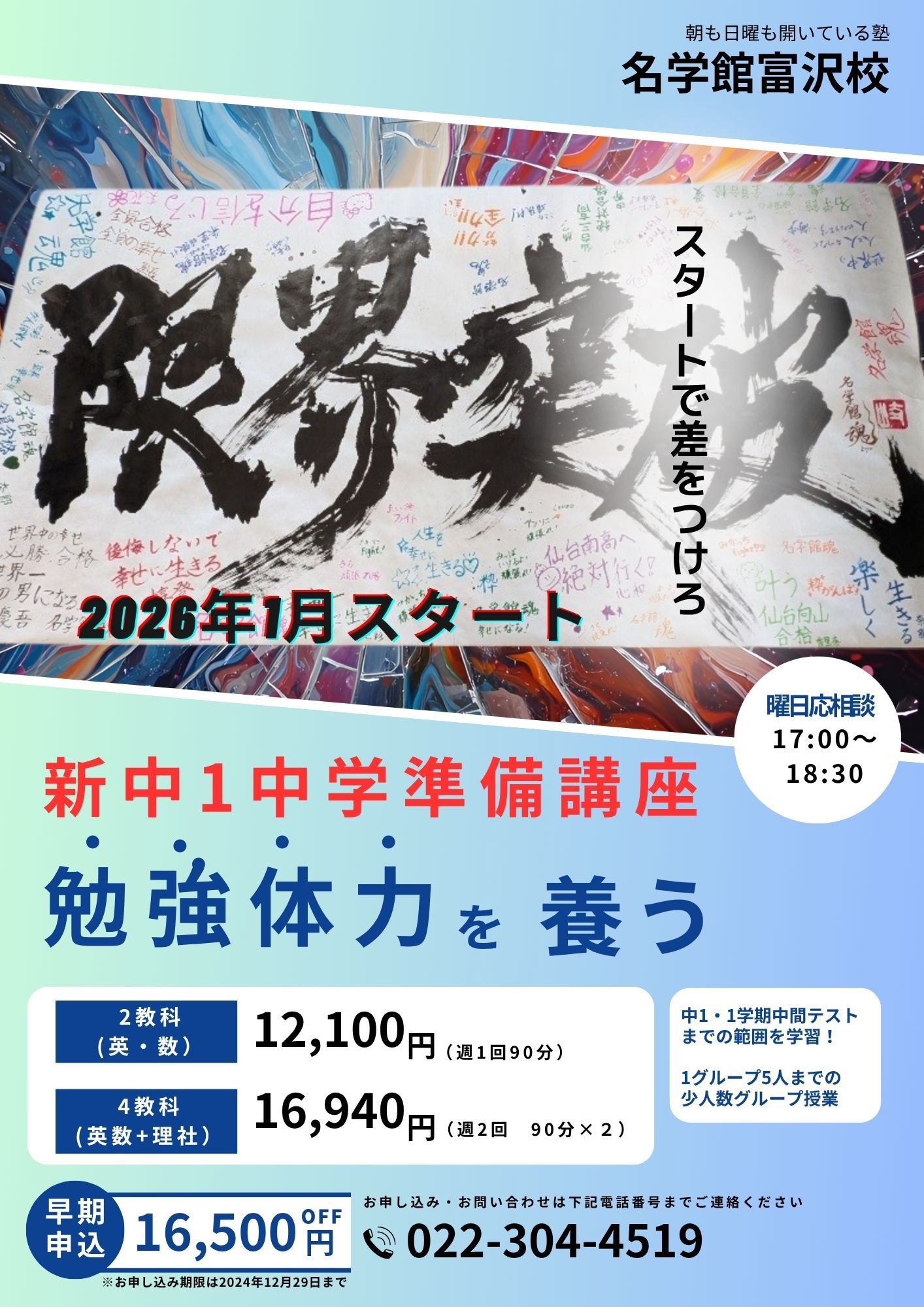 最近新中1のお問い合わせを多くいただくように